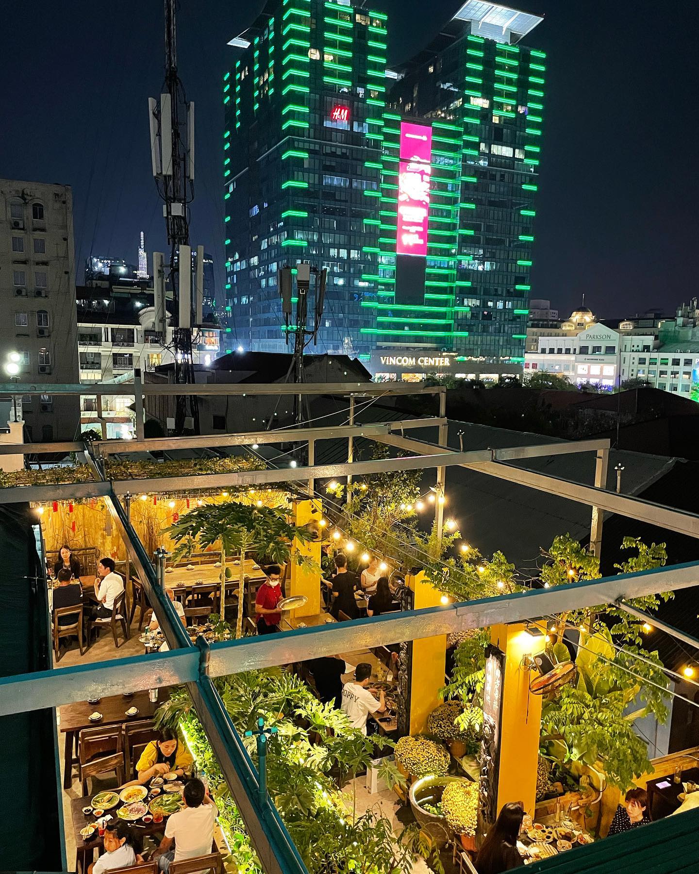 The spacious rooftop dining area offers a unique perspective right in the bustling heart of Saigon, making it an ideal choice for romantic dates, family gatherings, or casual get-togethers with friends.