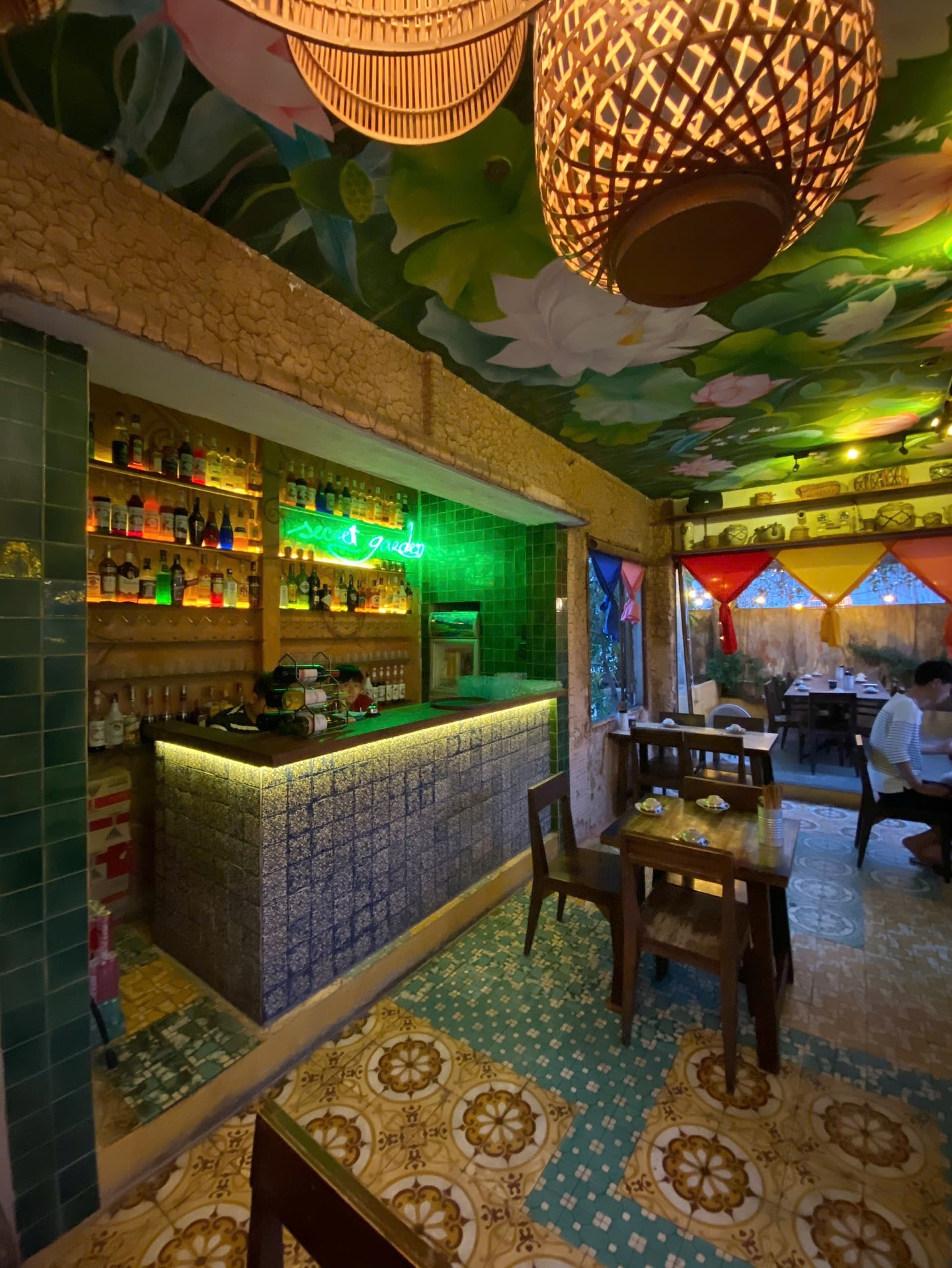 Secret Garden welcomes you with a simple yet refined setting—wooden tables and chairs, warm yellow lights, and décor inspired by the Vietnamese countryside.