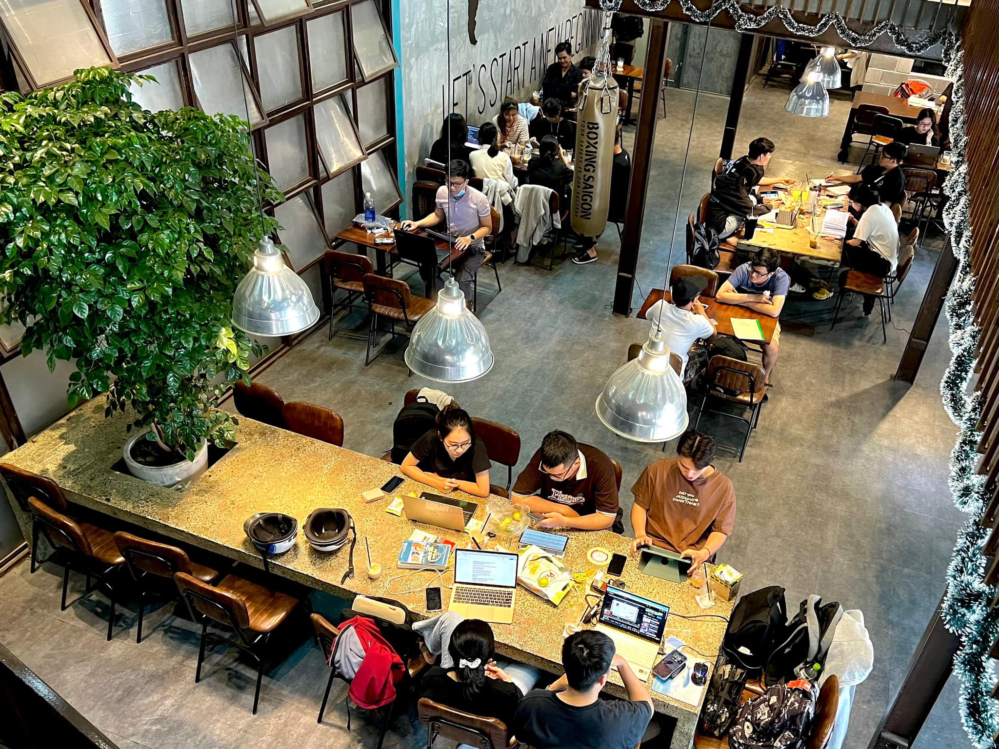 If you’re looking for a spacious and stylish café in District 3, then Garage Coffee will impress you from the very first moment. Located at 462-464 Nguyễn Thị Minh Khai, District 3, Ho Chi Minh City, the café combines bold Industrial design with nostalgic Vintage touches, creating a space that is both edgy and cozy.