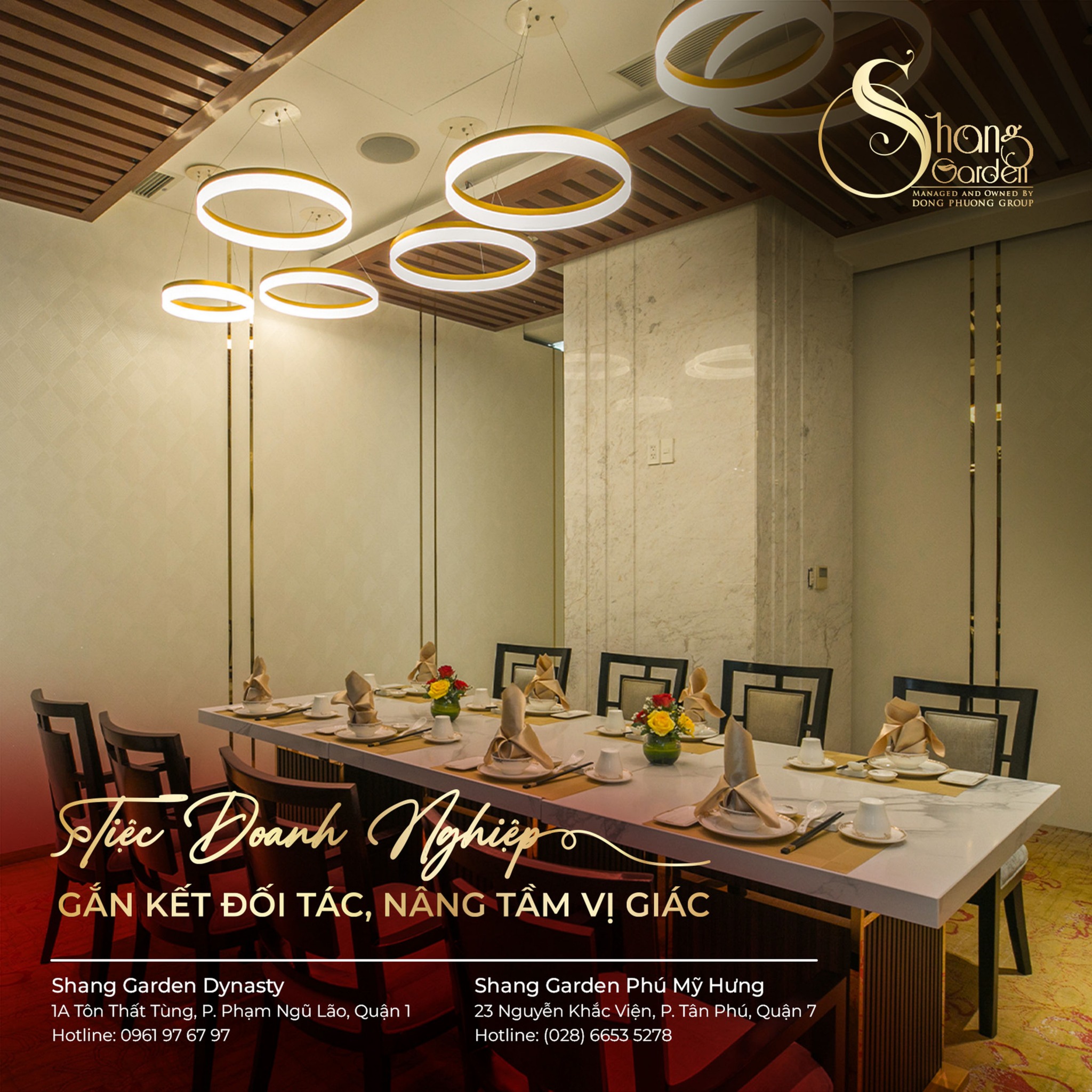 If you are searching for a Chinese restaurant that is both stylish and classic, intimate yet luxurious, then Shang Garden is the perfect destination. Located in the heart of District 7, this restaurant offers a refined, elegant, and upscale atmosphere – the ideal setting for warm family dinners, lavish celebrations, or important business gatherings.