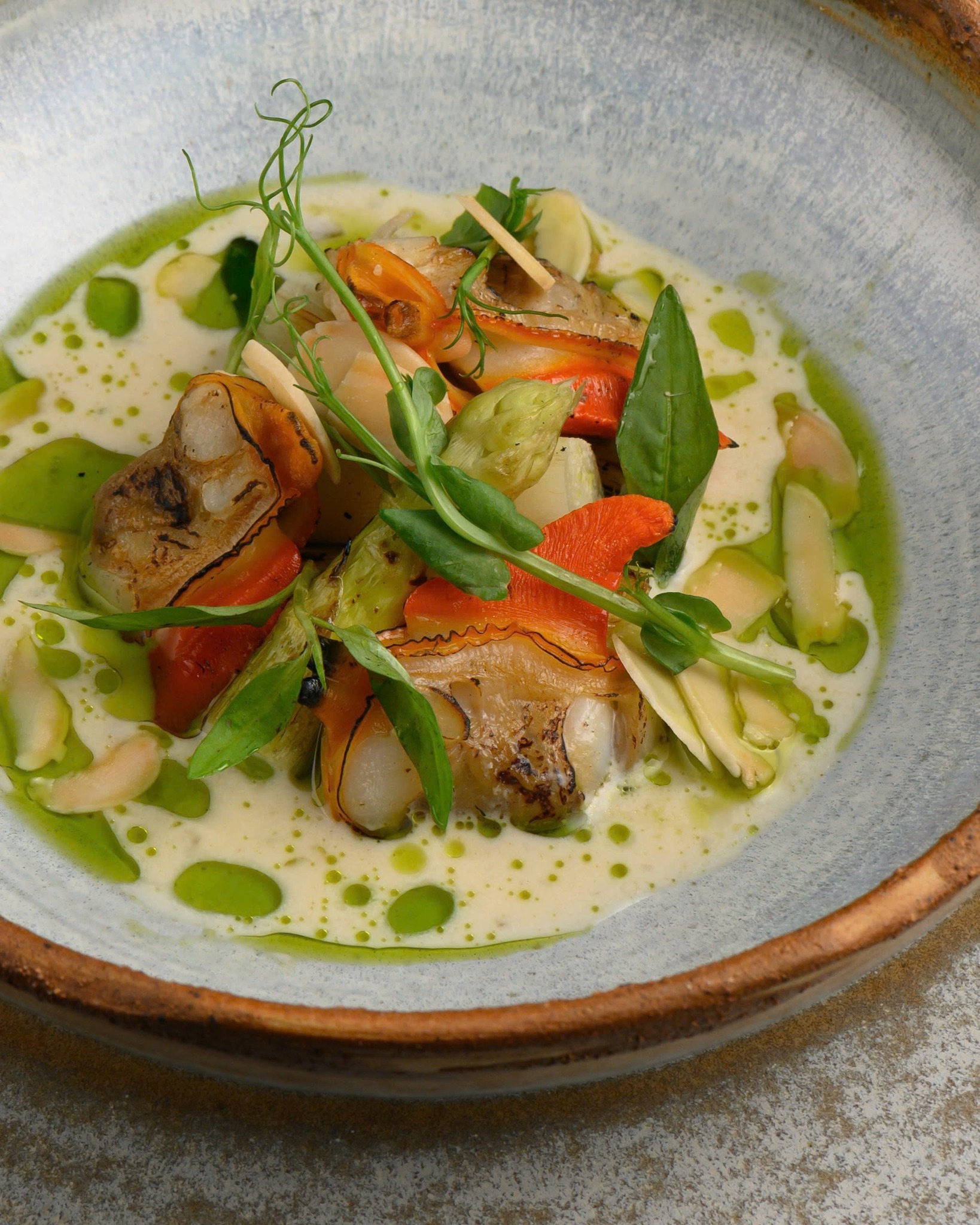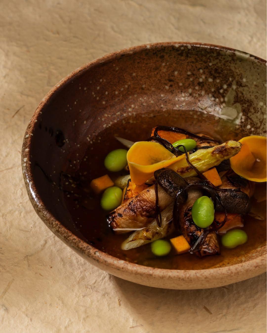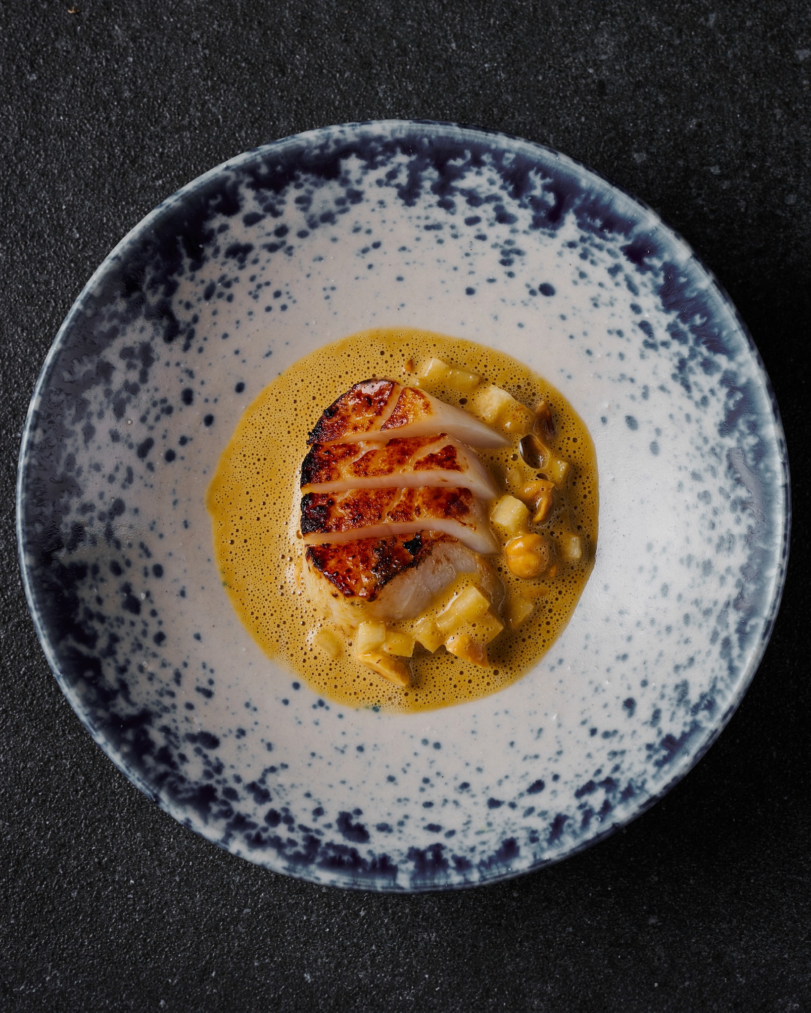 - Fresh water caltrop adds a crisp balance, completing this harmonious culinary composition.
