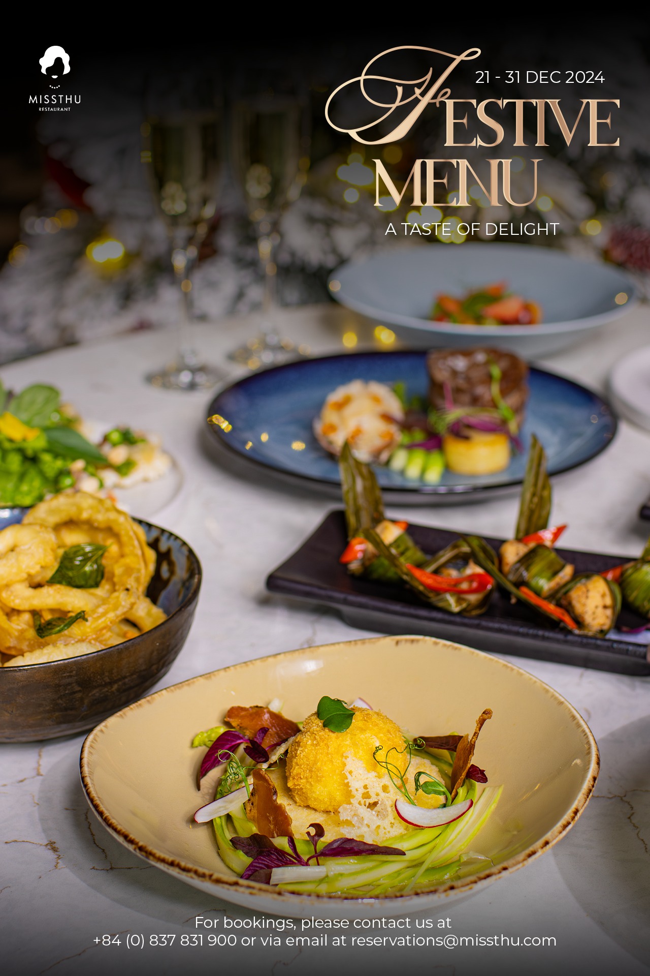 At Miss Thu, dishes are designed to highlight depth of flavor while celebrating artistic presentation. Each plate is a harmonious blend of high-quality ingredients and the creative vision of the culinary team.