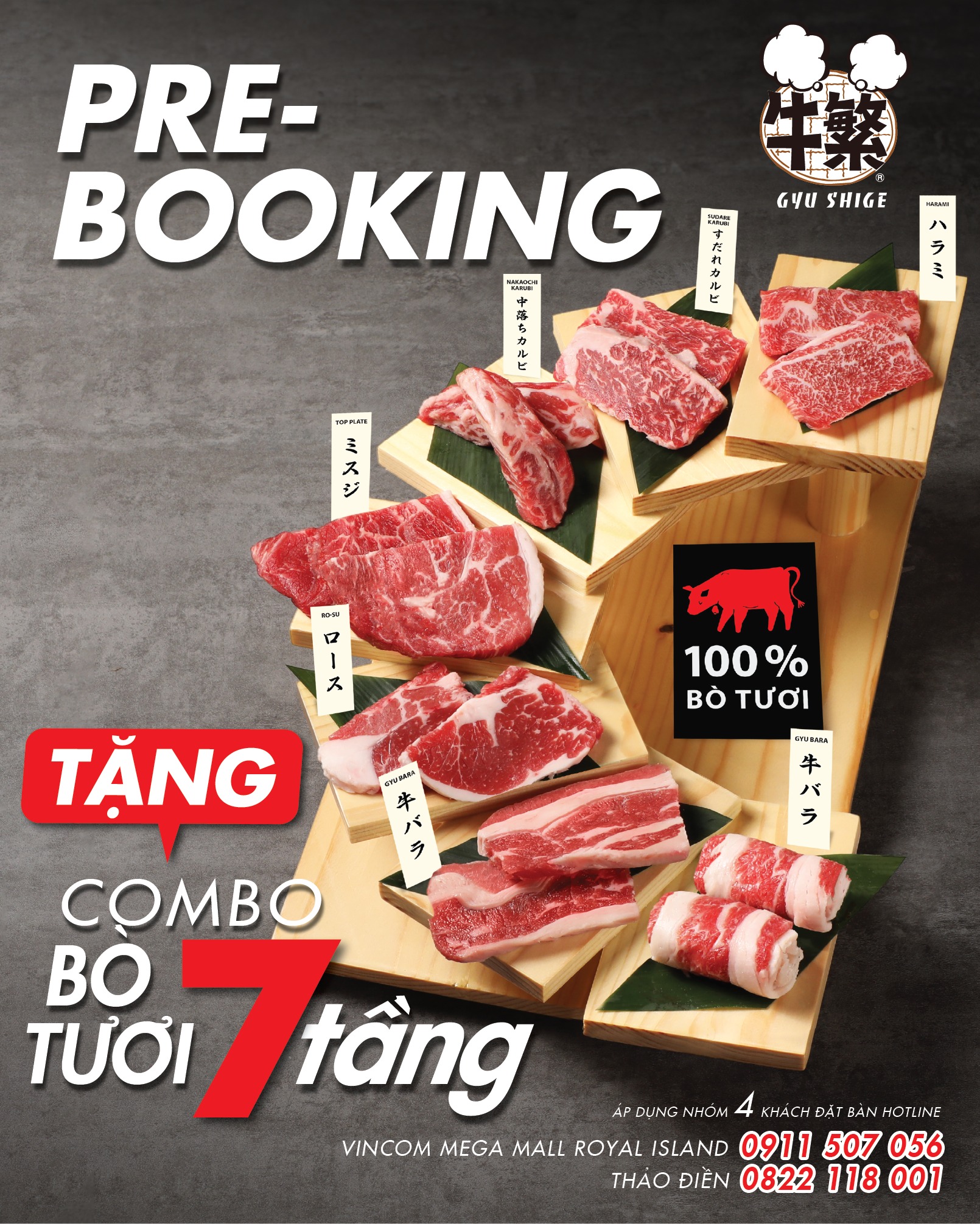 Located at Crescent Mall, 101 Ton Dat Tien, Tan Phong Ward, District 7, Ho Chi Minh City, Gyu Shige – Ngưu Phồn is the perfect destination for anyone who loves authentic Japanese barbecue. With its vibrant, delicately designed Japanese-style space, the restaurant delivers an atmosphere that is warm, romantic, and comfortably private—ideal for immersing yourself in a full-flavored culinary journey.