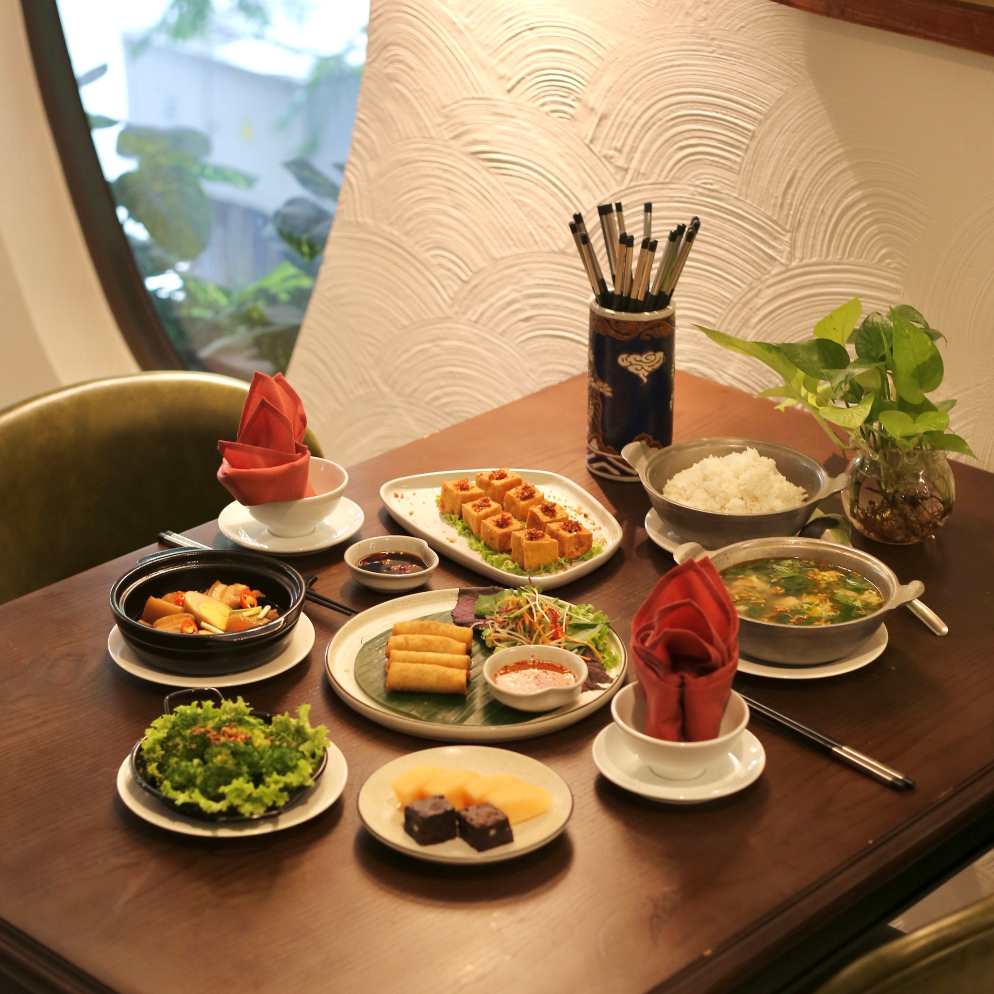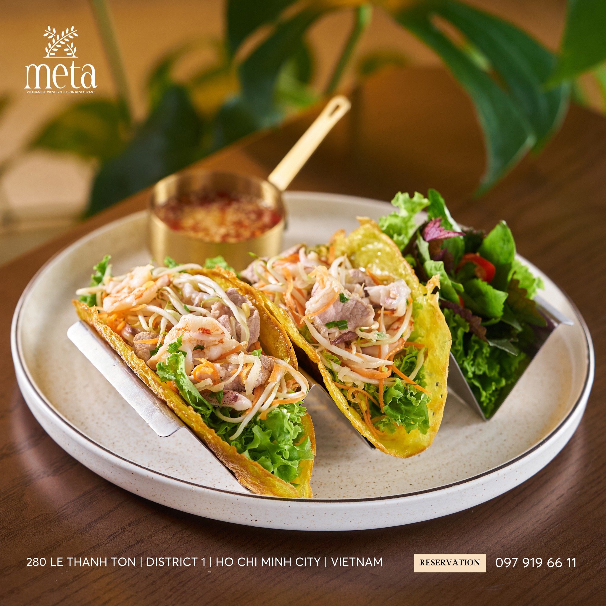Me Ta Restaurant shines with its signature Fusion cuisine—a delicate balance of international ingredients and traditional Vietnamese flavors.