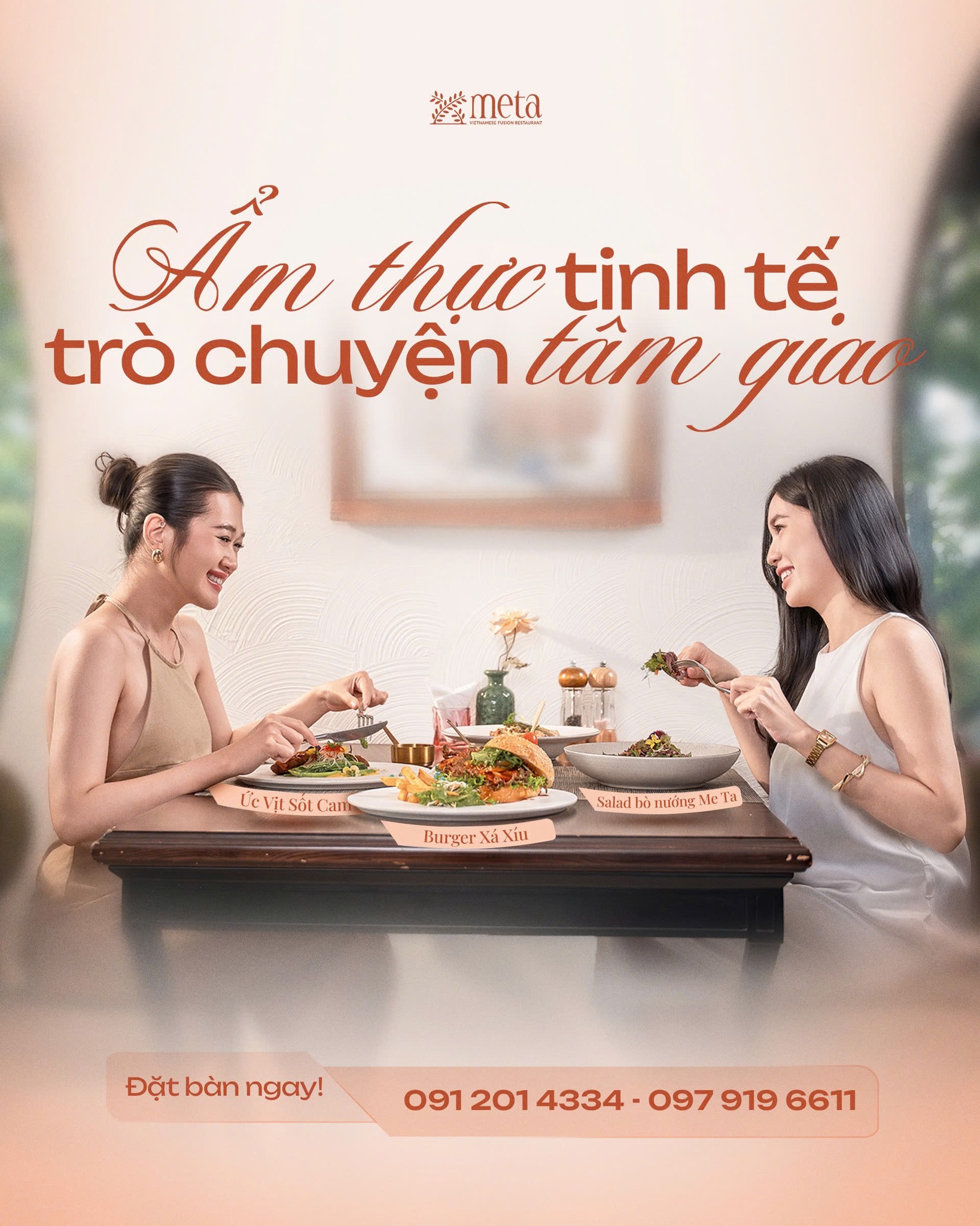 Located in the heart of District 1, Me Ta Restaurant offers a dining space that is both elegant and cozy—where every moment becomes an experience worth savoring. Thoughtfully designed with warm lighting, graceful décor, and soothing music, Me Ta is the perfect destination for romantic dates, gatherings with friends, business meetings, or simply treating yourself to a delightful meal.
