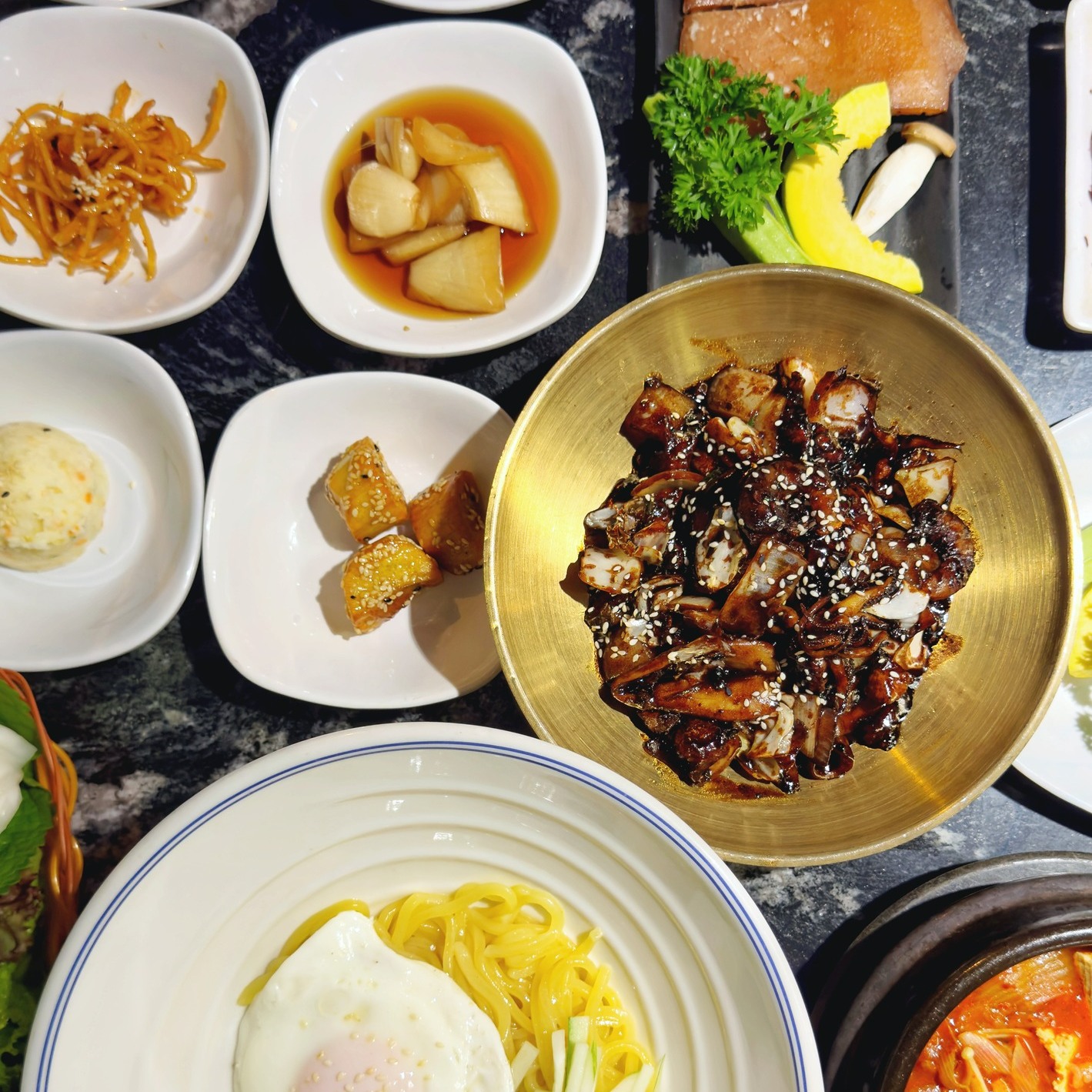 Your dining experience is complemented by unlimited Korean side dishes such as: