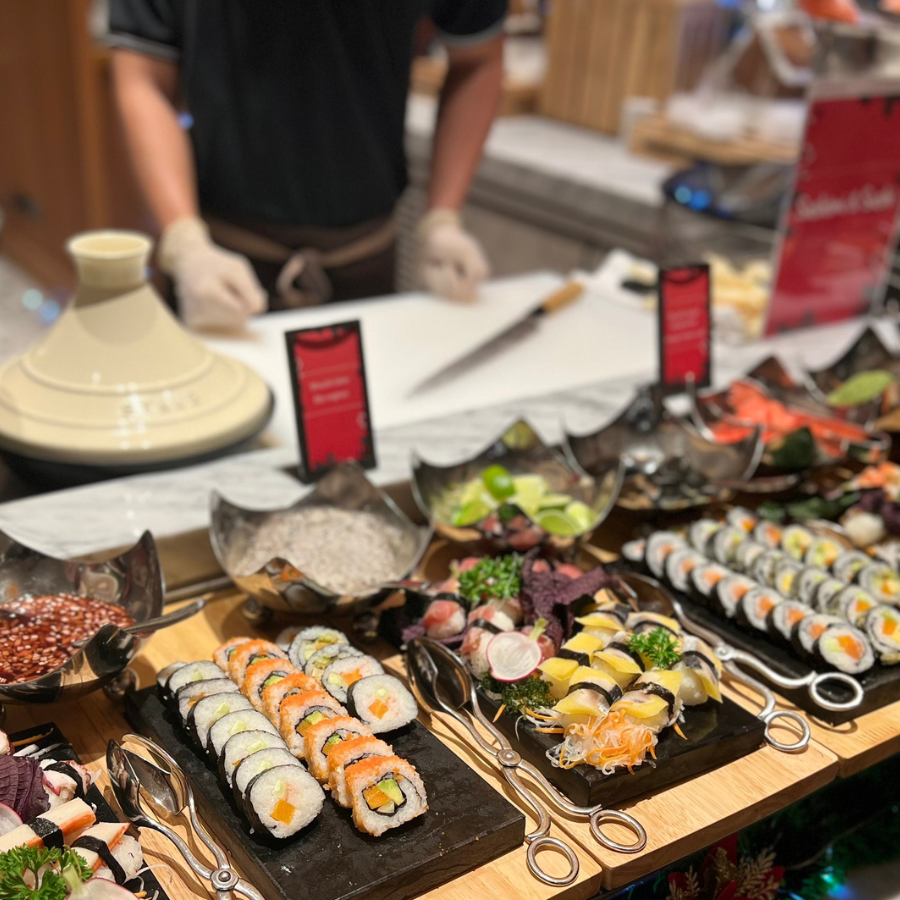 - Live-grilled seafood station – aromatic and irresistible