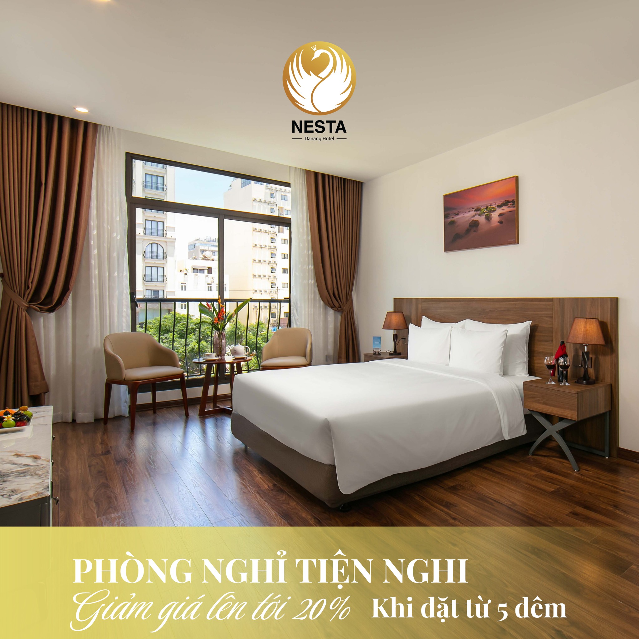 Located at 268 Võ Nguyên Giáp, Bắc Mỹ Phú, Ngũ Hành Sơn, Da Nang, Nesta Danang Hotel offers an elegant retreat, attentive service, and a perfect location for travelers to explore the beauty of the city known as “the most livable in Vietnam.” Featuring modern, cozy design and romantic courtyard views, the hotel is an ideal choice for couples, families, and business travelers.