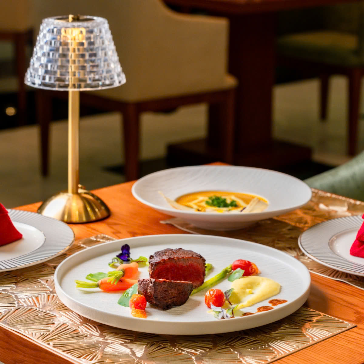 Soft golden lighting and cohesive design elements complete the elegant ambience filled with comfort and emotion