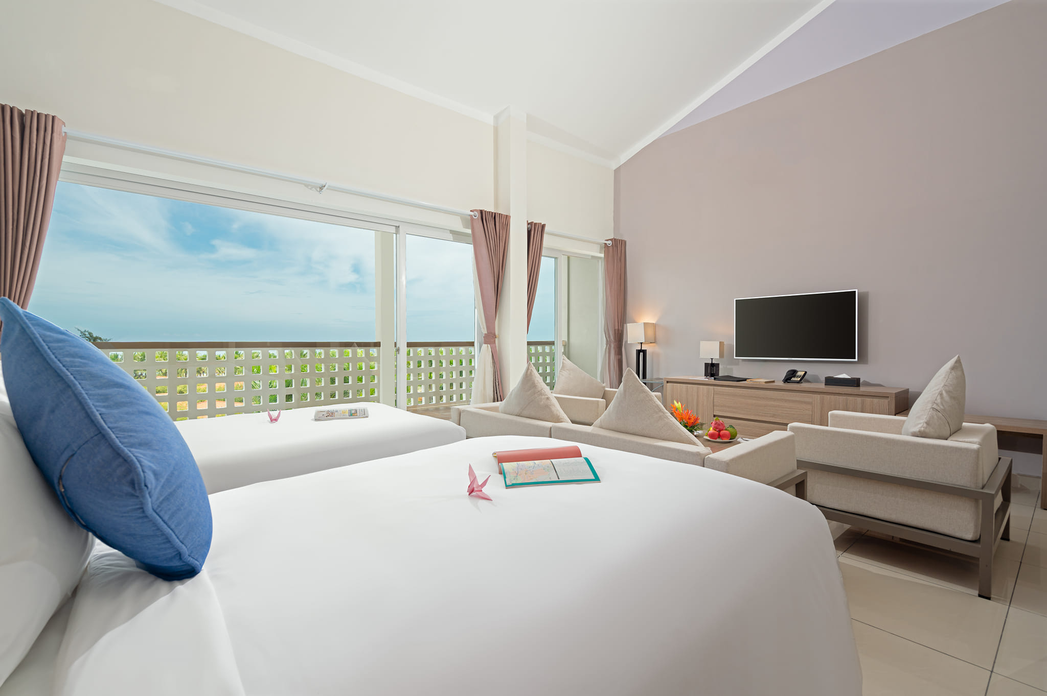 Guest accommodations at Grandvrio Ocean Resort Danang are designed with modern simplicity and understated elegance: