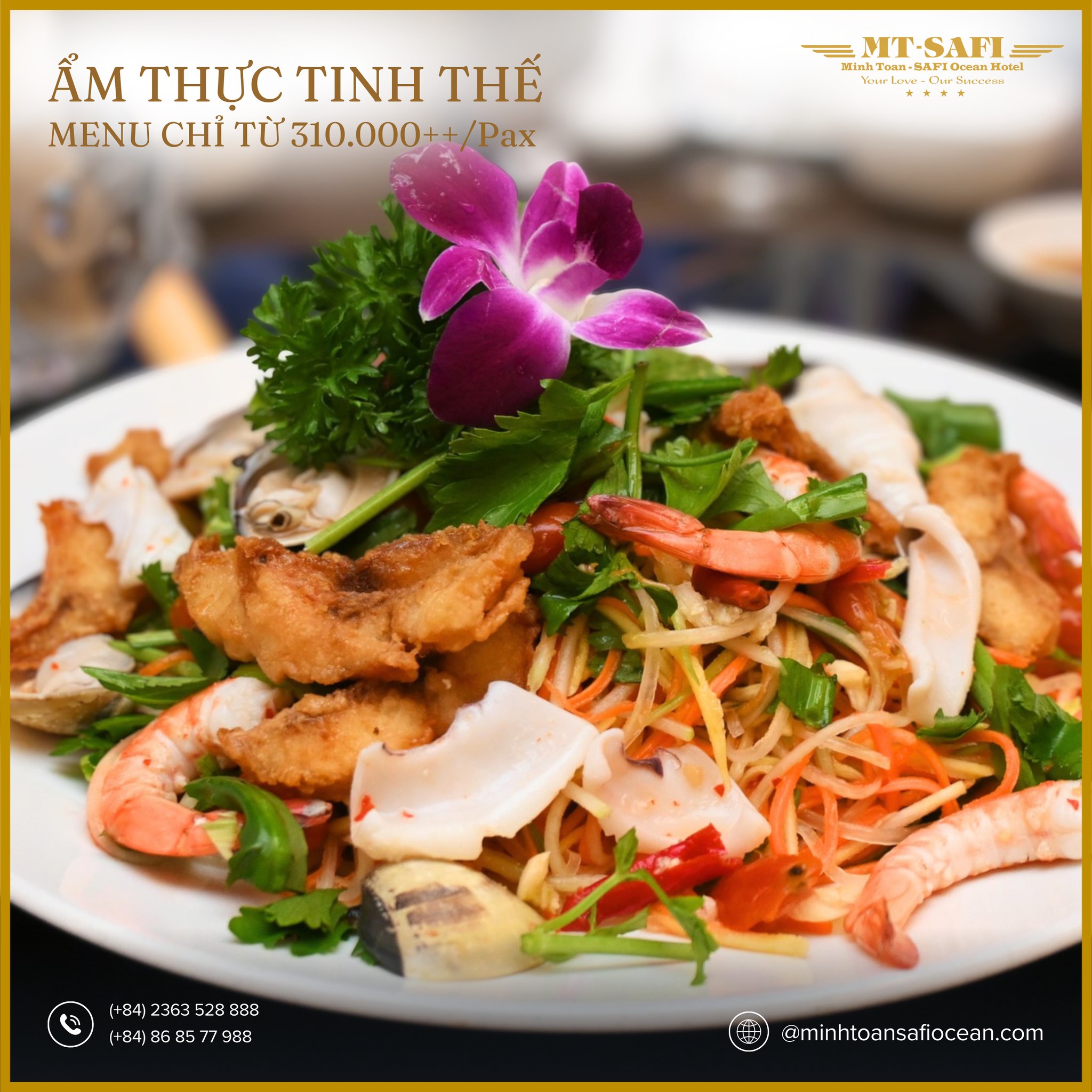 With its elegant banquet spaces, premium 4-star cuisine, comfortable accommodations, and prime beachfront location, Minh Toan SAFI Ocean Hotel is the perfect choice for those seeking professionalism, refinement, and emotionally enriching experiences in Da Nang.
