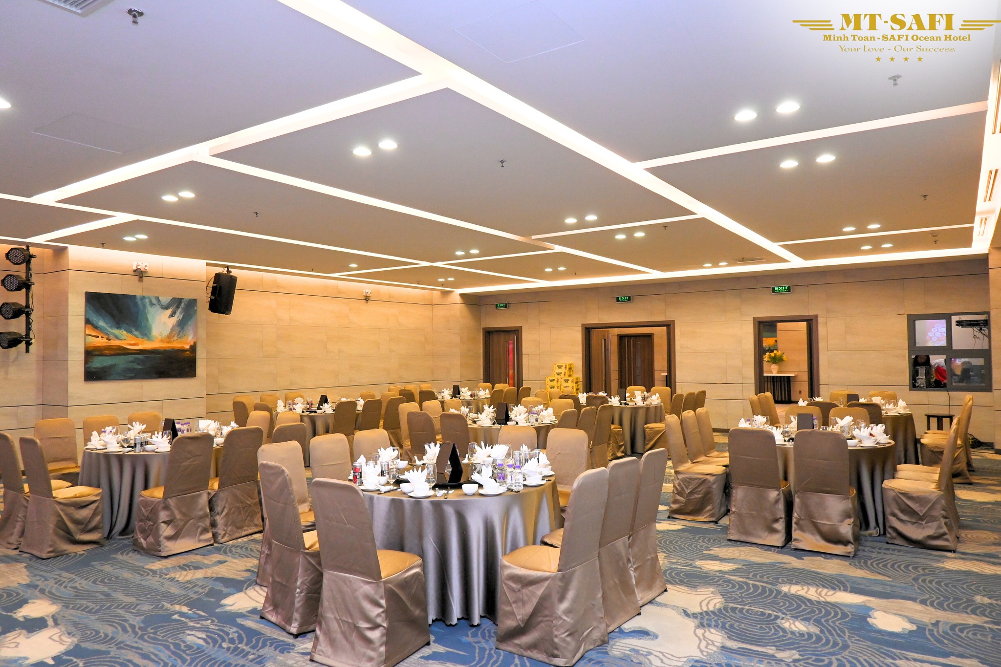 One of the hotel’s most striking highlights is its luxurious banquet hall, featuring: