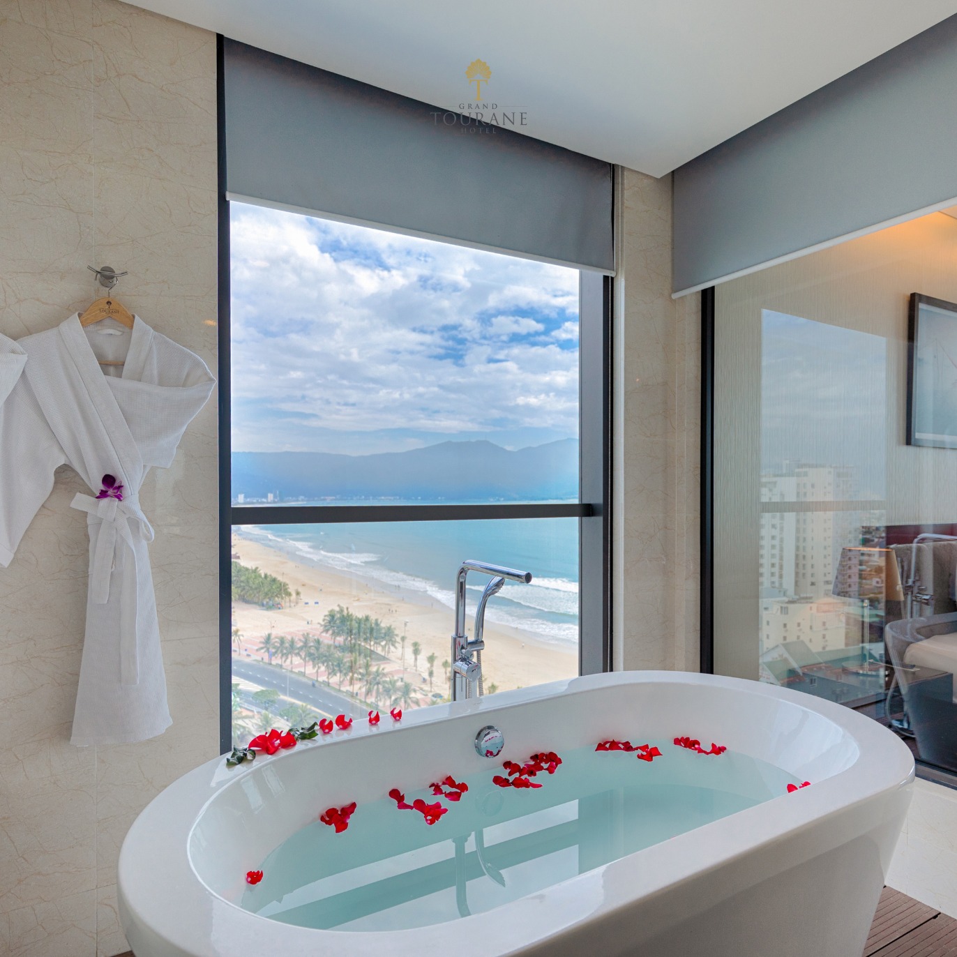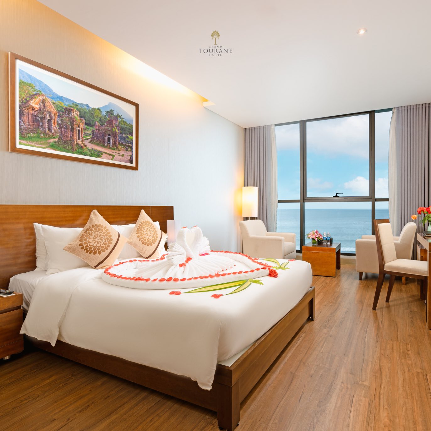Waking up in a beachfront room at Grand Tourane Hotel Danang, guests can enjoy: