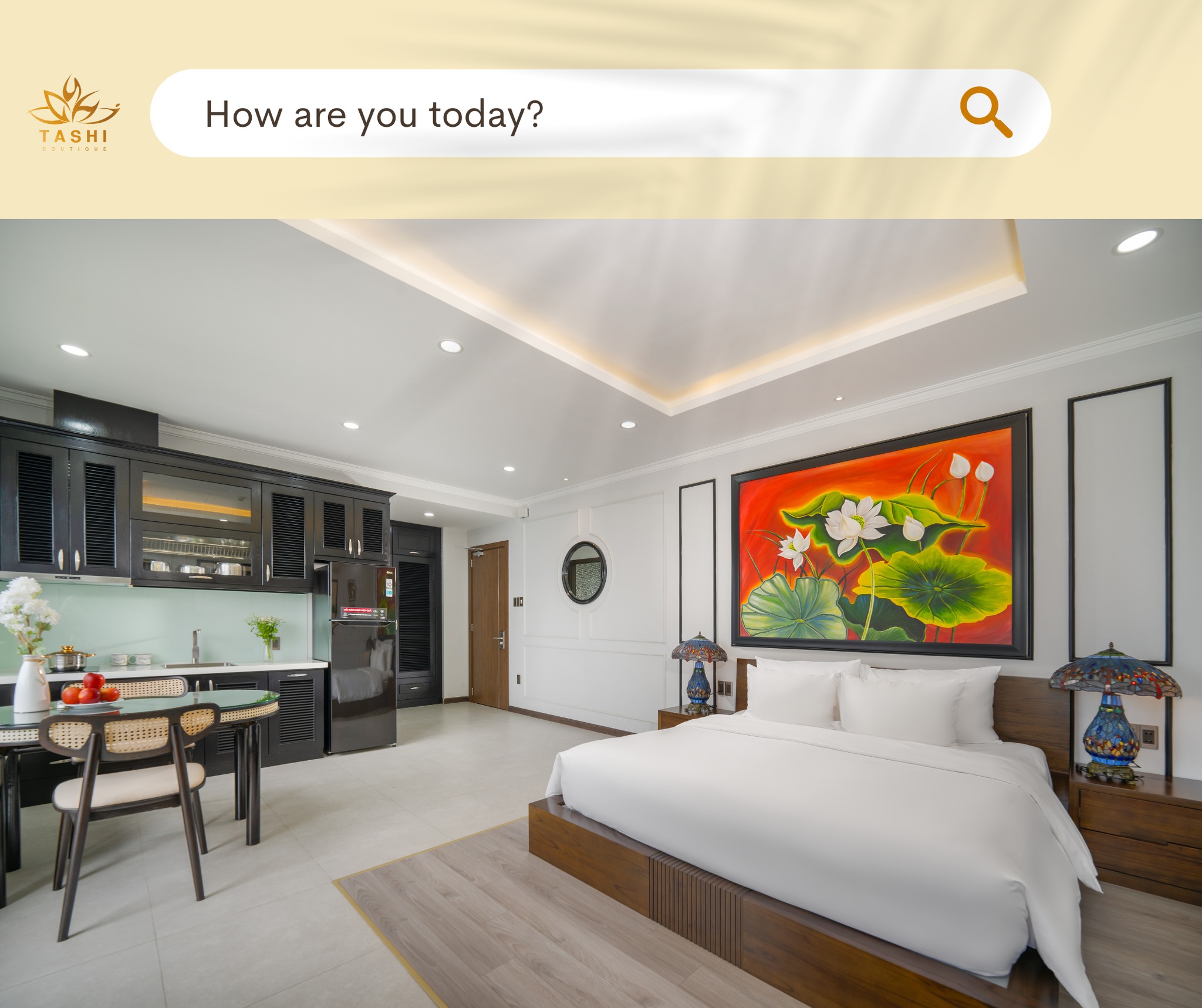 The accommodation at Tashi Oasis Hotel & Apartments is designed to high-end boutique standards, with a strong focus on warmth and aesthetics: